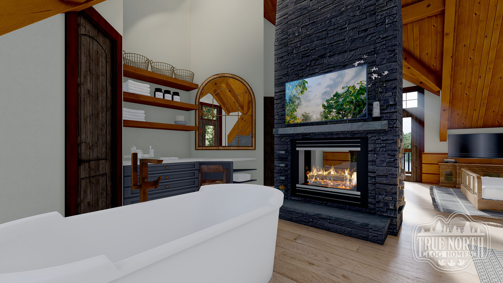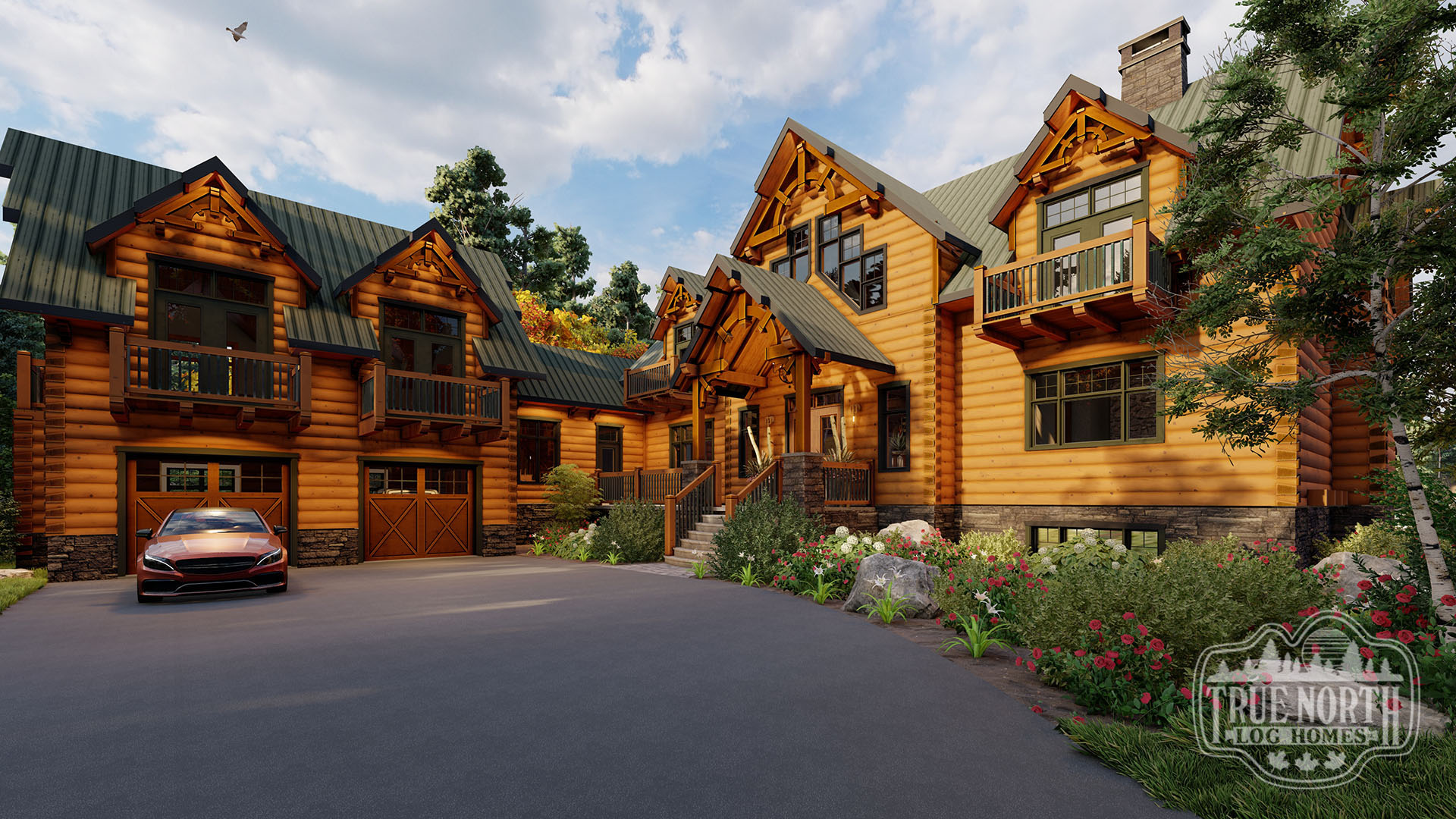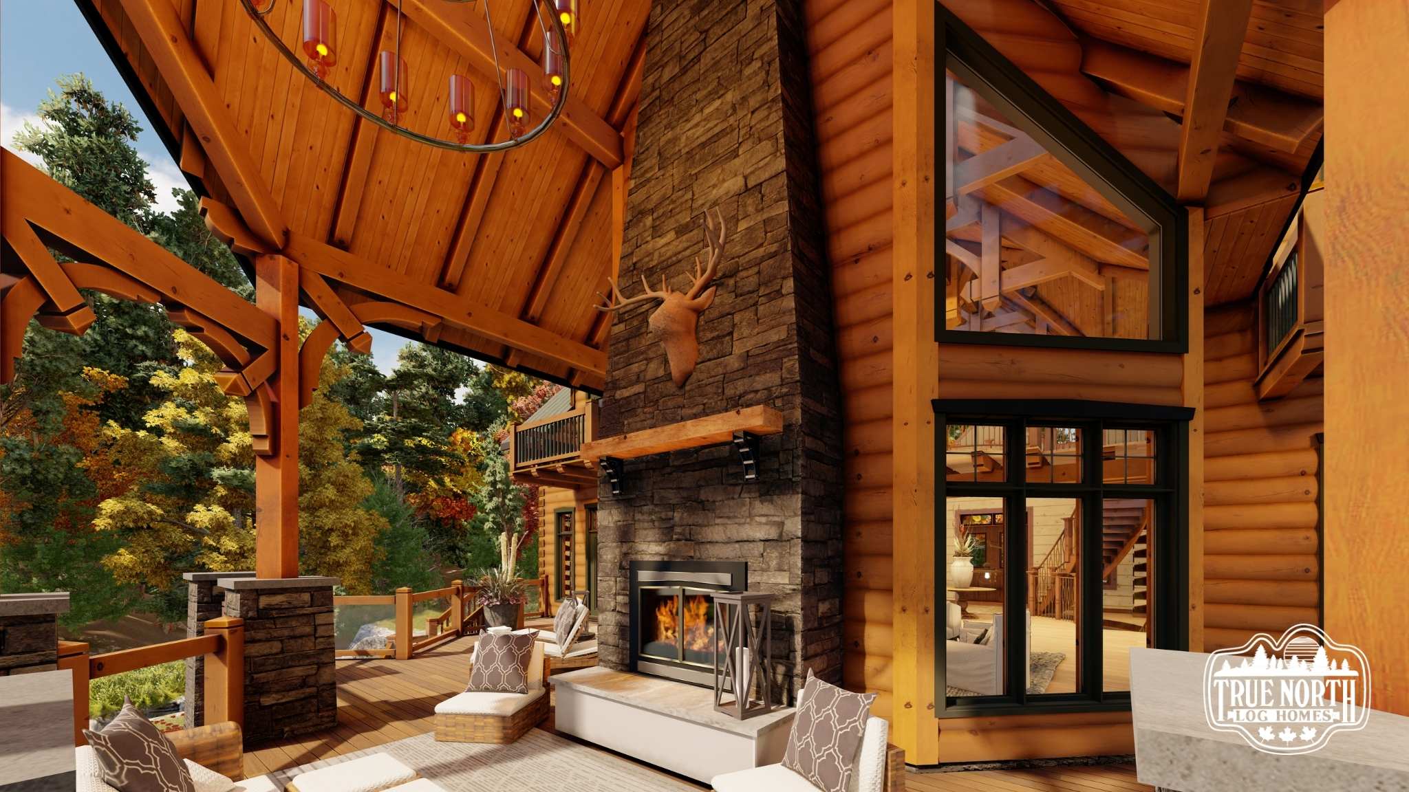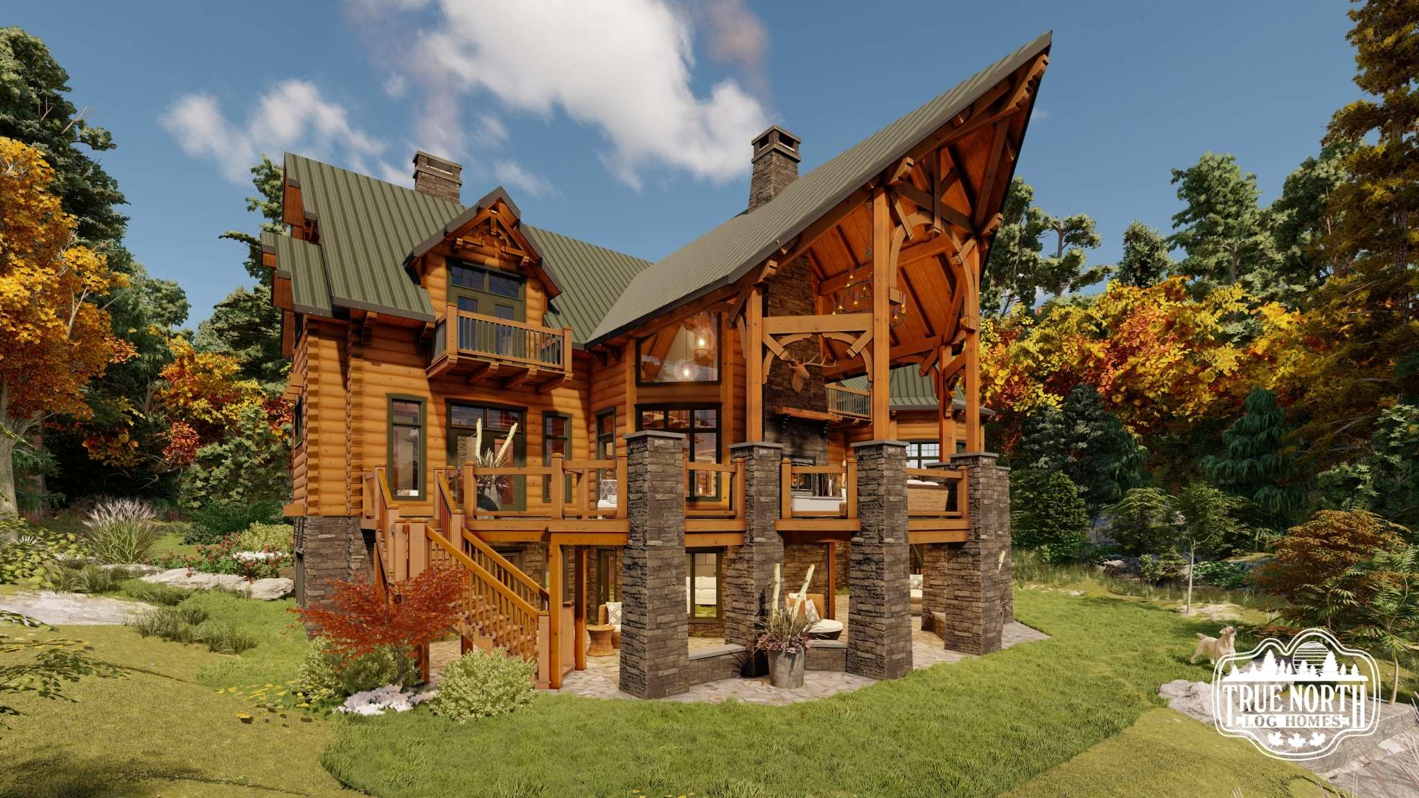 Designed with a European flavor, Brimstone is a fantastic home for large gatherings and has amazing characteristics that will not only spark conversation but will have your guests wanting to come back time, and time again. From the welcoming foyer with dual curved stairs and a unique loft above to the great room featuring beautifully crafted timber trusses and ceiling rafters. The kitchen is ideal for hosting lots of guests and lends itself to the eye-catching turret. Designed to capture you and your guests in the wonder of the timber rafters and our signature King post. The floor plan allows for two master suites and a spare bedroom with an attached en suite, and office. A truly spectacular Model that includes every timber and stone feature imaginable.