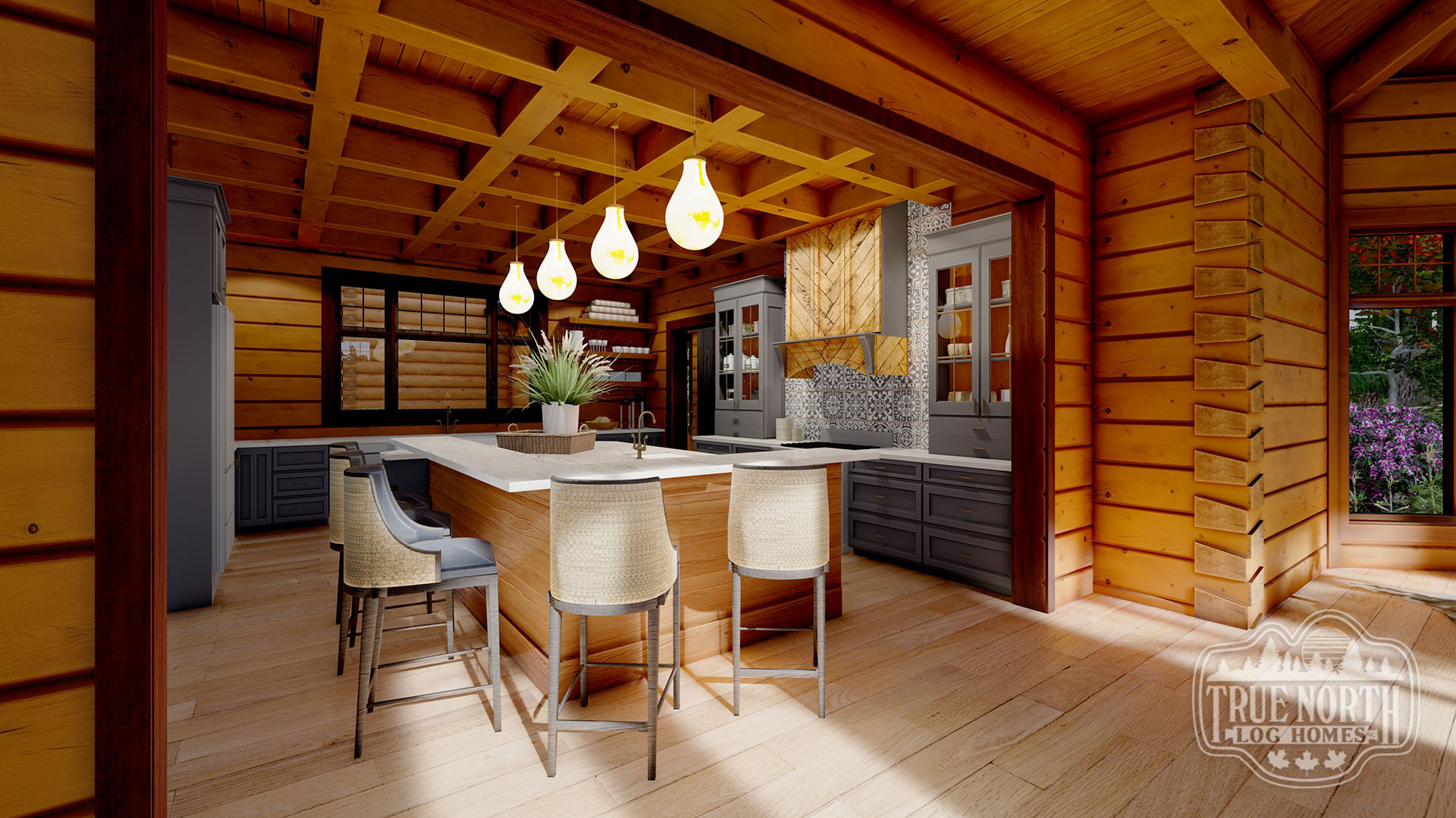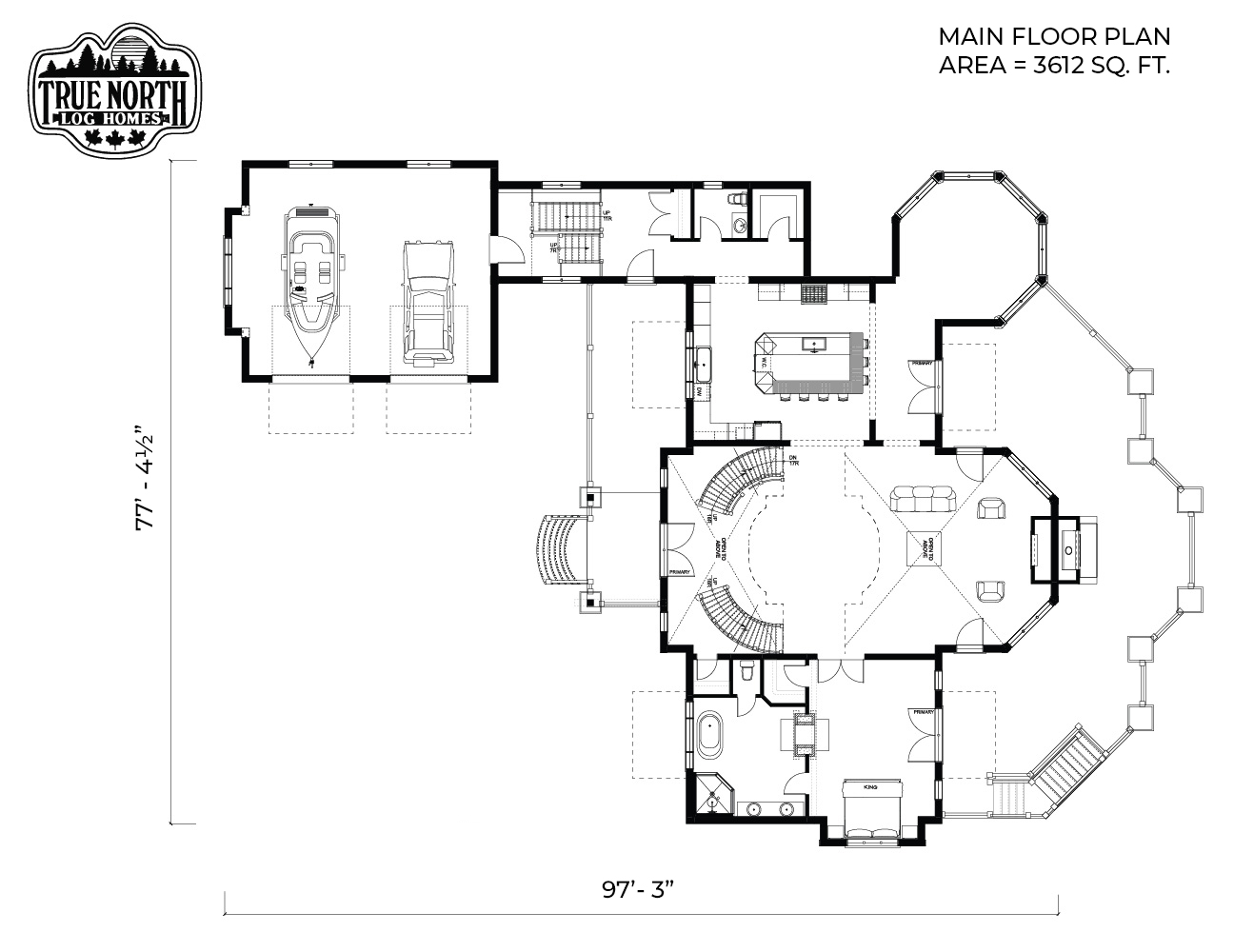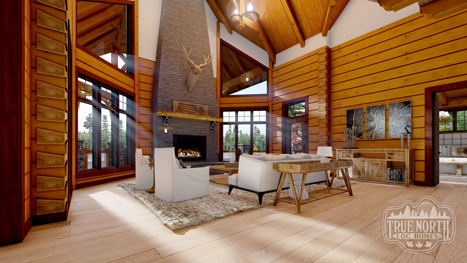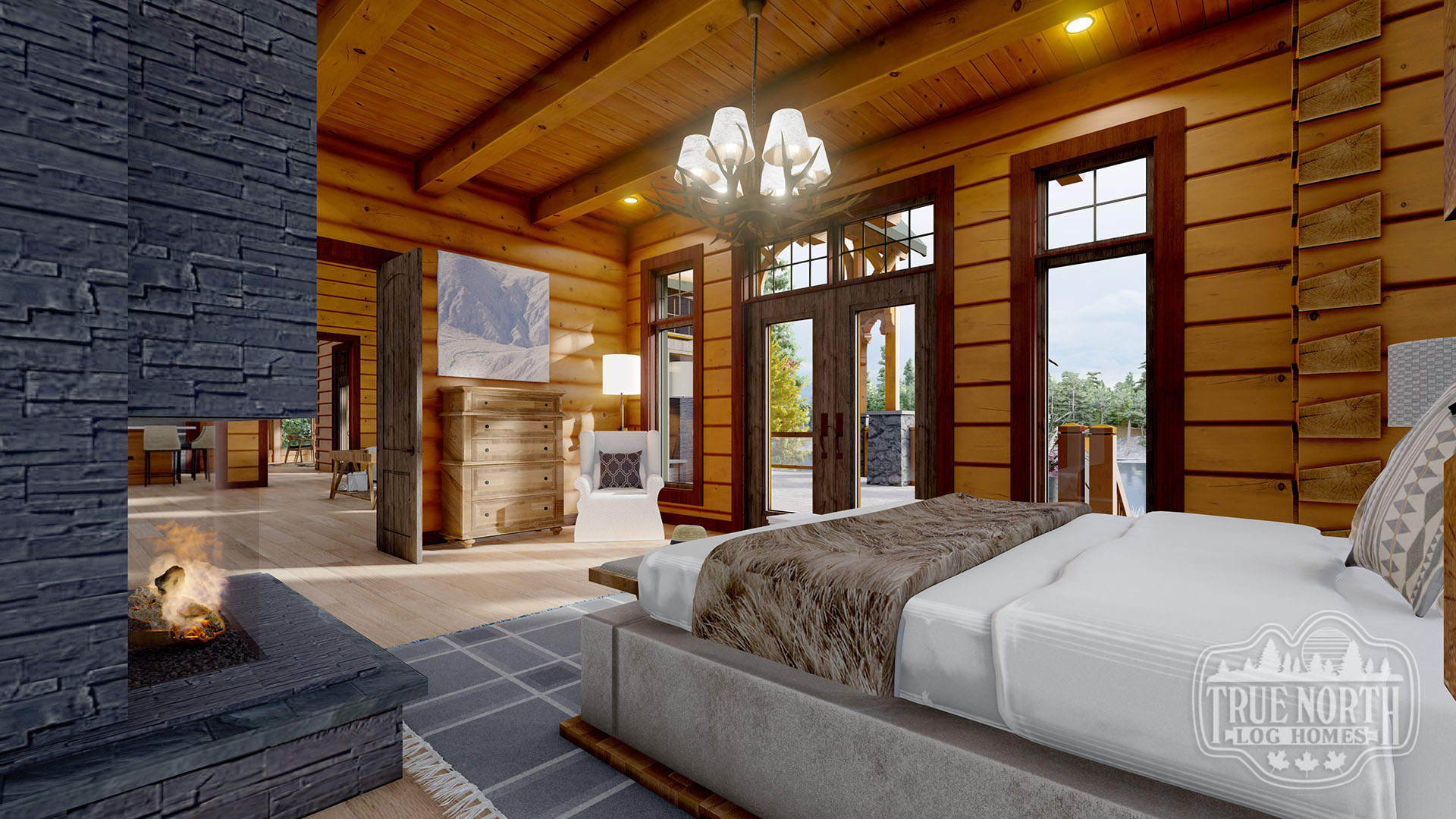 Designed with a European flavor, Brimstone is a fantastic home for large gatherings and has amazing characteristics that will not only spark conversation but will have your guests wanting to come back time, and time again. From the welcoming foyer with dual curved stairs and a unique loft above to the great room featuring beautifully crafted timber trusses and ceiling rafters. The kitchen is ideal for hosting lots of guests and lends itself to the eye-catching turret. Designed to capture you and your guests in the wonder of the timber rafters and our signature King post. The floor plan allows for two master suites and a spare bedroom with an attached en suite, and office. A truly spectacular Model that includes every timber and stone feature imaginable.