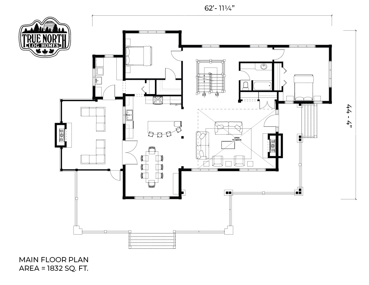 The side entry design, is ideal for building sites that don’t allow convenient access from the back, and when you enter, you’re greeted with awe-inspiring cathedral ceilings. A series of timber posts and braces between the kitchen and great room, create an architectural statement and help divide the spaces, without creating barriers. The large kitchen and dining rooms were designed with entertaining in mind, and the large windows compliment the interior, while allowing you to enjoy lakeside views. The screened porch fireplace is perfect for keeping mosquitos at bay, while roasting marshmallows.