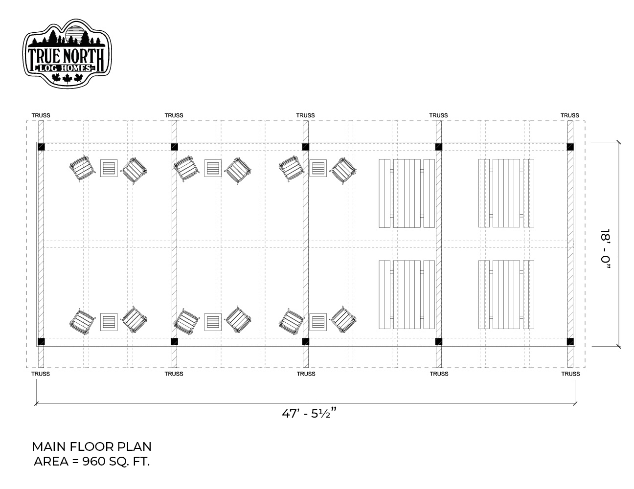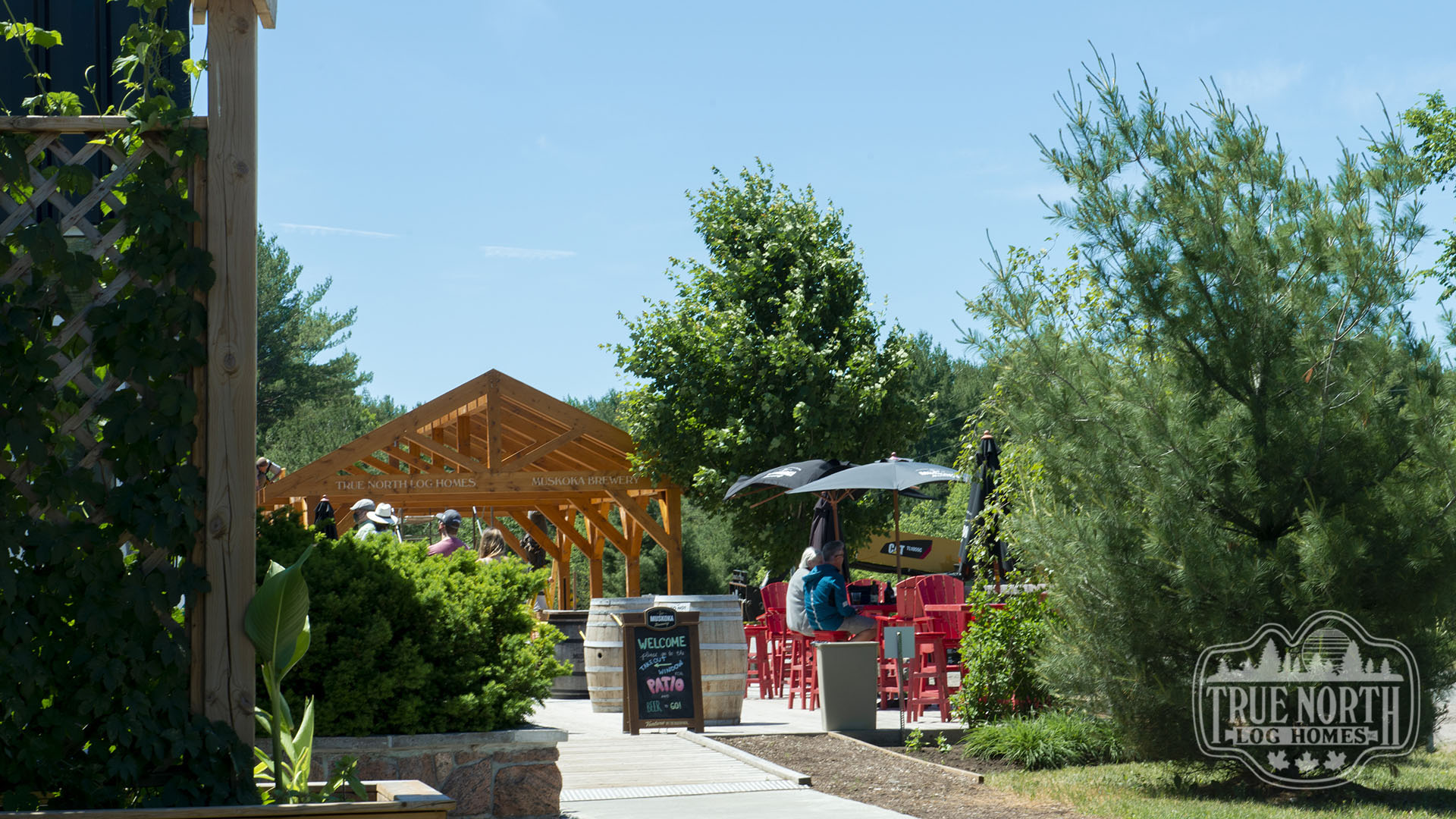 This Pavilion speaks to those who want space to host events, who want to entertain even when mother nature wants to rain on your special day. A series of timber trusses throughout place a spotlight on the beauty of timber frame craftsmanship. The special True North Log Homes touch is the Exterior Log knee walls. The Large top railing along the exterior of this structure allows guests and patrons to sit at this feature and enjoy their food and beverage. This build is the ultimate outdoor entertainment space for any occasion.