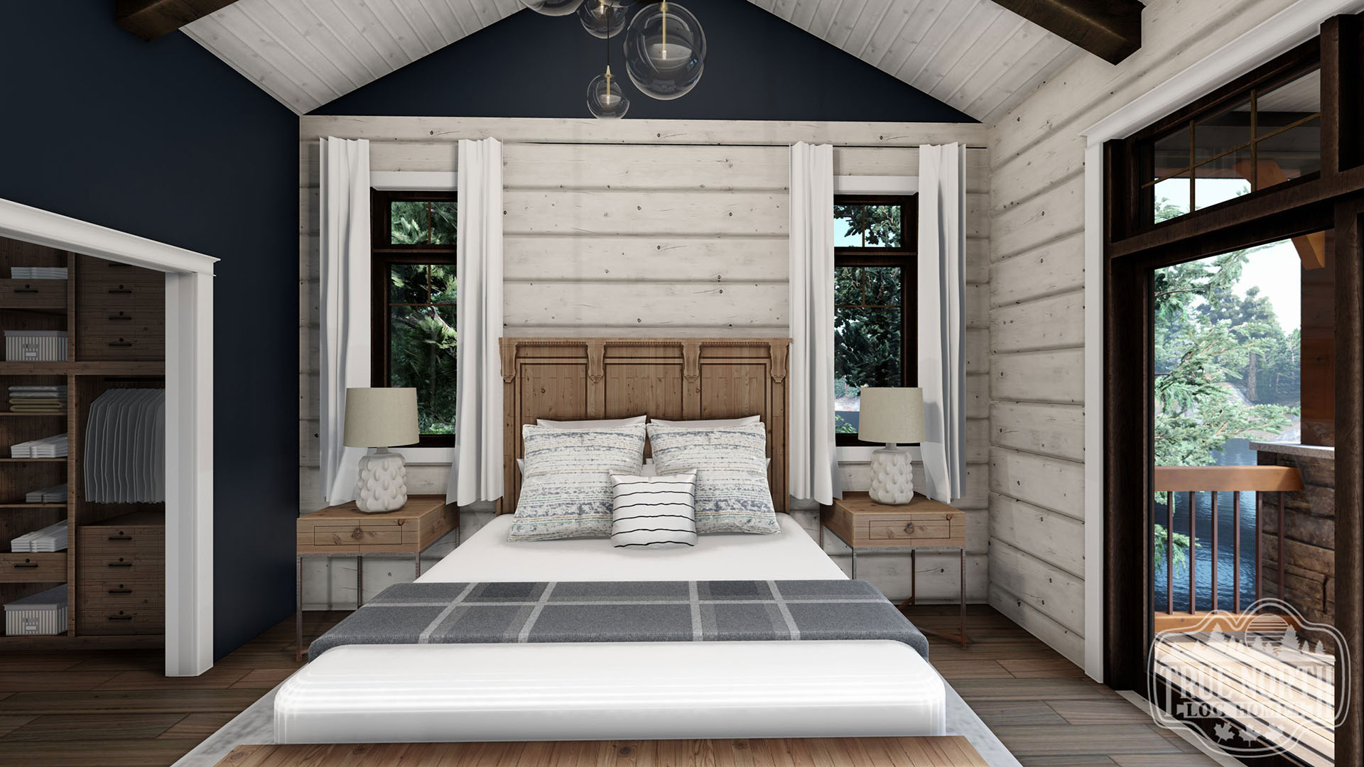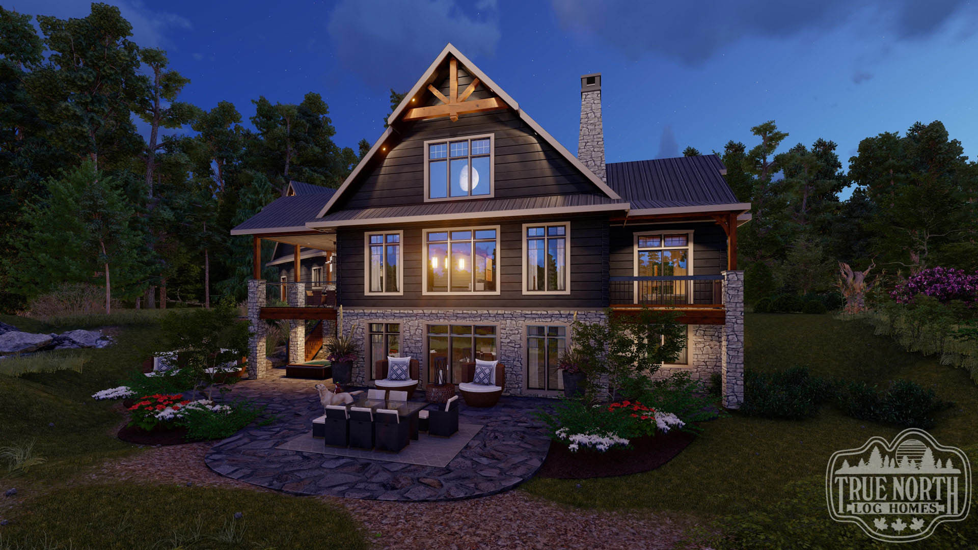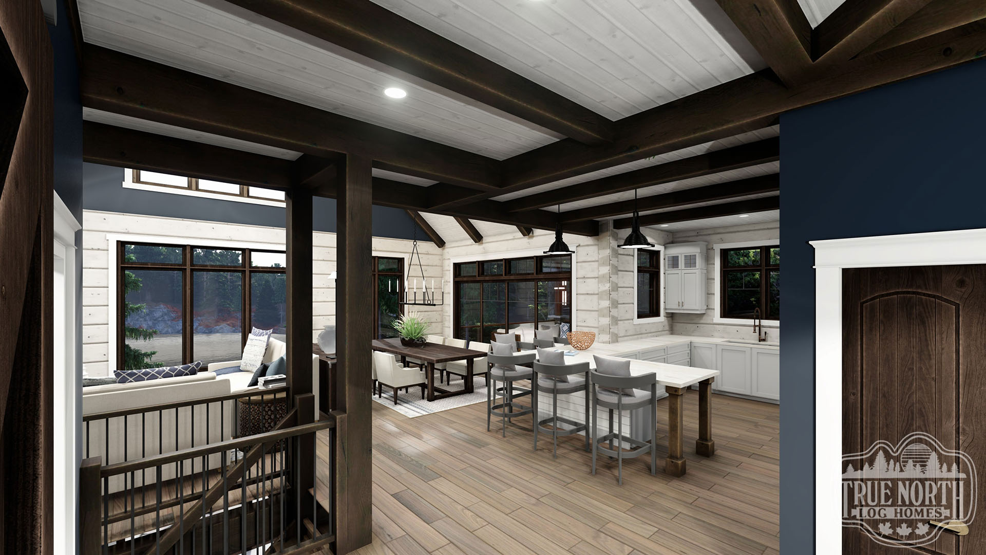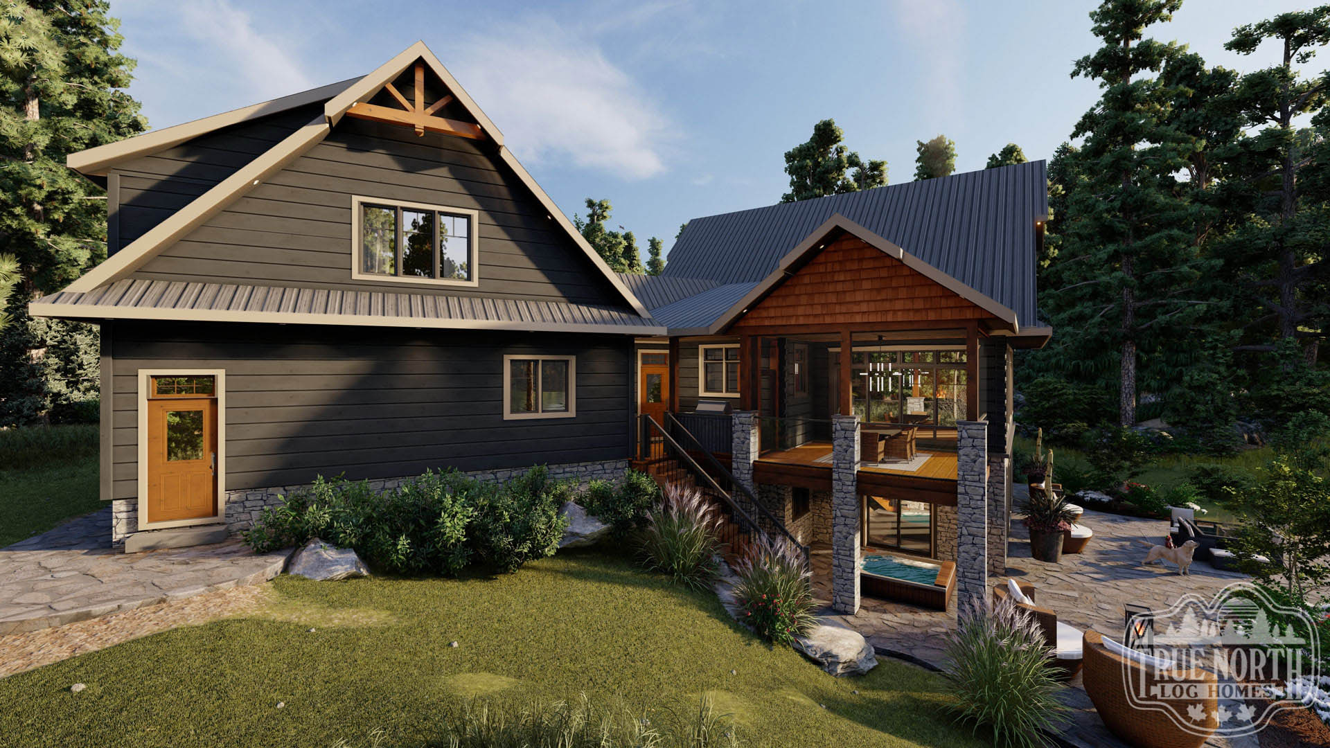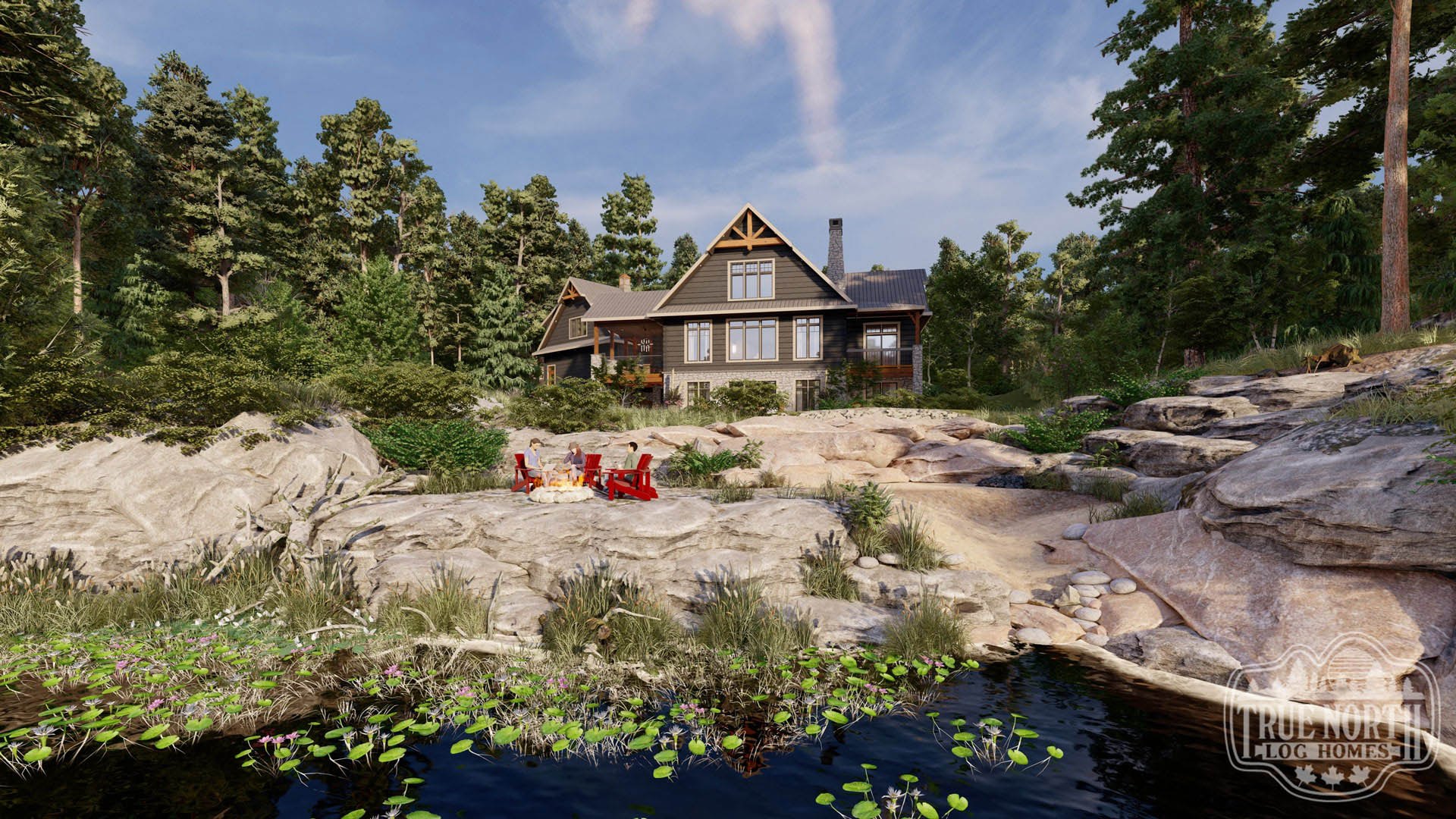 Welcome to the re-imagined Tranquil Waters, this design keeps the elegant features of the Tranquil Water IIb, puts it on a bungalow plan. The creative front entry with the shed dormer and the decorative timber braces for the porch remain as the true statement for the home. The vision adds a Muskoka room for outdoor entertaining off the kitchen/ dining area, and an individual deck for the Master Bedroom. The new floor plan gives a new layout for the kitchen and living room. This adds a new flavour to the efficient layout plan that Tranquil Waters is known for.